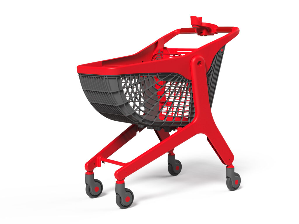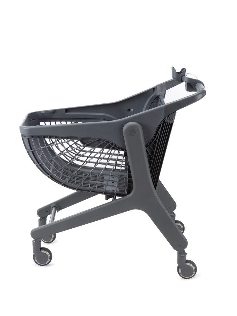 이 쇼핑카트는 대형마트용 이라기 보다는 백화점과 같이 단층으로 이루어진 마트용으로 개발이 되었습니다. 기존의 이마트용 대비 카트의 용량이 작습니다. 가장 큰 차이점은 바퀴에 있습니다. 대형마트용 쇼핑카트는 층간 이용에 사용되는 무빙워크에서 카트가 미끄러지지 않도록 무빙워크에 바뀌가 끼여서 고정이 되도록 하였지만 이 제품은 그냥 일반적인 바퀴를 채용하였습니다.
